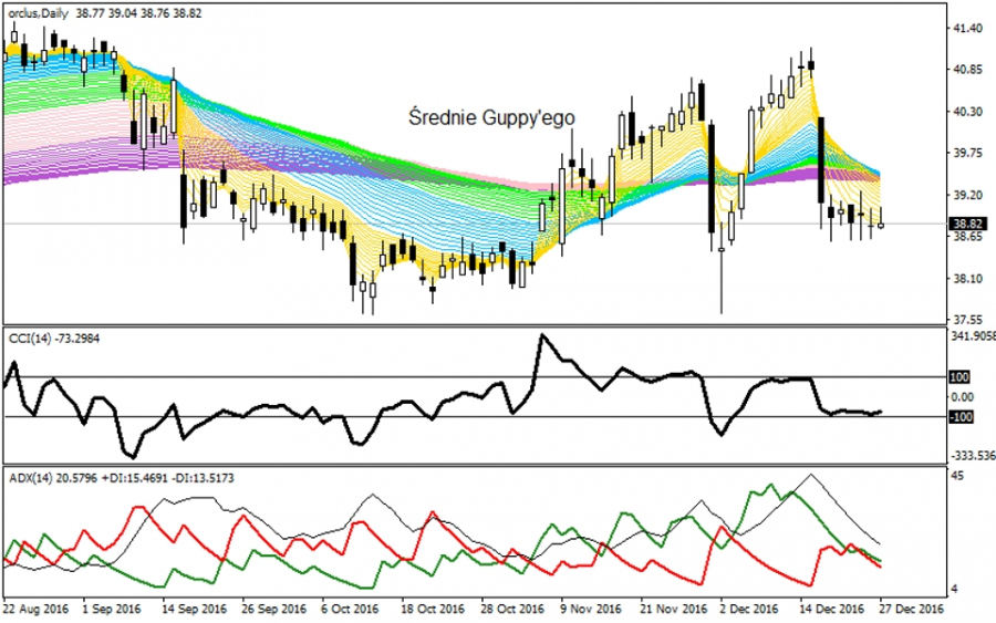 Tendencja odczytywana na podstawie wskazań DMI / ADX: trend boczny