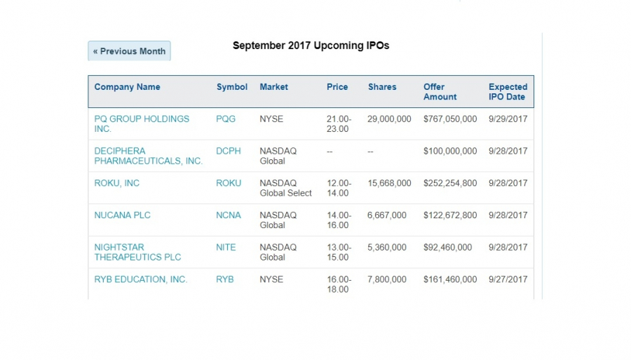 W segmencie IPO spółki czekały do ostatniej chwili, aby zadebiutować jeszcze w trzecim kwartale. W mijającym tygodniu dokonało się aż siedem debiutów i w większości były to udane wejścia. Inwestorzy chętnie kupowali papiery z drugiej ręki. Licząc od ceny z IPO największy debiut Best INC (BSTI ) dał zarobić aż 20%, porządnie zachował się również kurs Zai Lab Limited (ZLAB ) mimo wysokiej ceny otwarcia, w stosunku do oferty pierwotnej (18,00 $). Najbardziej spektakularne wejście zanotował najmniejszy z oferowanych papierów TDH Holdings, Inc. (PETZ ). Zarobili wszyscy, inwestorzy z IPO i traderzy skupujący już na rynku, którzy tylko w piątek zanotowali niemal 100% zysk. Totalną plamą okazał się piątkowy debiut firmy Secoo Holding Limited - ADR (SECO ) - nie było chętnych do kupowania chińskiego sklepu internetowego. Kurs zanurkował ponad 20% niżej na koniec sesji.